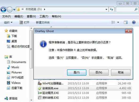 彈出提示框,程序準備就緒,直接點擊是,立即重啟進行計算機還原。