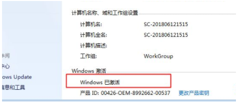 6、在計算機屬性界面的底部我們即可看到win7系統是否激活。