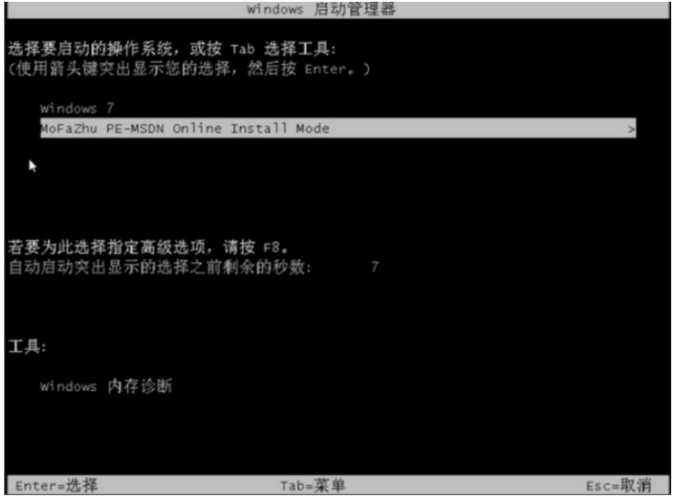 4、在這個界面,選擇mofazhu pe-msdn項按回車鍵進入pe系統內。