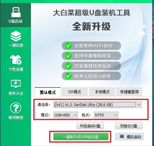 1.打開大白菜U盤制作工具,點擊一鍵制作U盤;