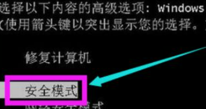 1、按下電腦開機鍵,一直按F8鍵,電腦就會出現高級選項界面,點擊安全模式。