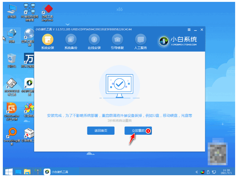 6.系統安裝完成之后點擊立即重啟電腦按鈕。