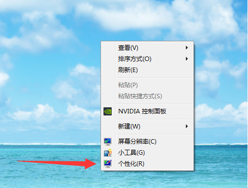 1、打開win7系統桌面,在空白處鼠標右鍵點擊,選擇個性化進入。