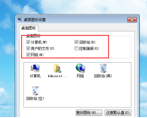 3、打開桌面圖標設置后,找到消失的圖標,勾選該圖標。
