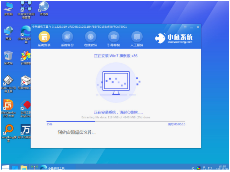 6、電腦此時在pe系統界面內,小魚裝機軟件將會自動開始安裝win7系統。
