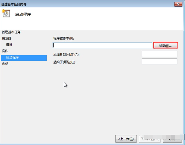 7、此時會彈出“啟動程序”的對話框,點擊“瀏覽”,按照“Windows——System32——shutdown”路徑找到并打開。
