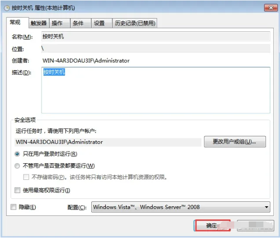 10、在彈出的“按時關機 屬性對話框內,點擊“確定“。