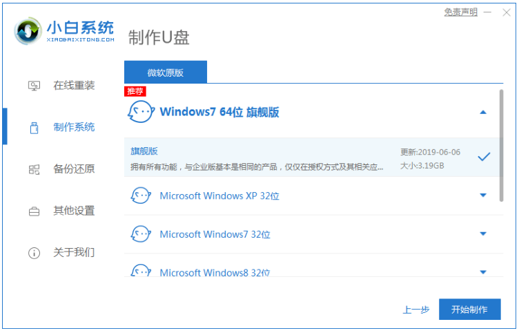 2、我們選擇需要安裝的win7系統,點擊開始制作。