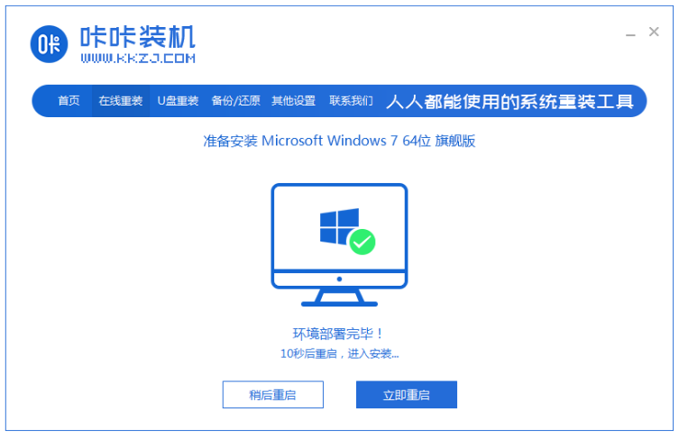 方法一:使用咔咔裝機工具給筆記本重裝win7系統