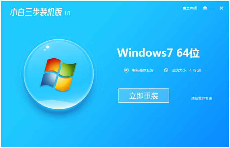 1、首先下載安裝小白三步裝機版工具,進入主頁界面選擇我們需要安裝的系統,點擊立即重裝。