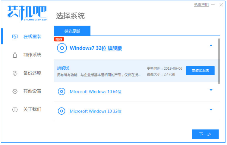 方法二:使用裝機吧一鍵重裝系統工具給電腦重裝系統win7