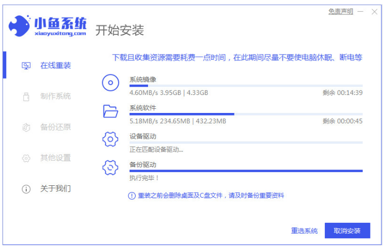 6、進入pe系統內,小魚裝機軟件此時將會自動開始安裝win7系統。