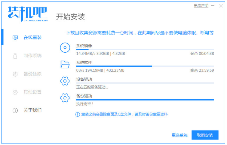 2.此時電腦裝機工具將會開始下載鏡像文件資料和系統驅動,大家耐心等待下載安裝完成。