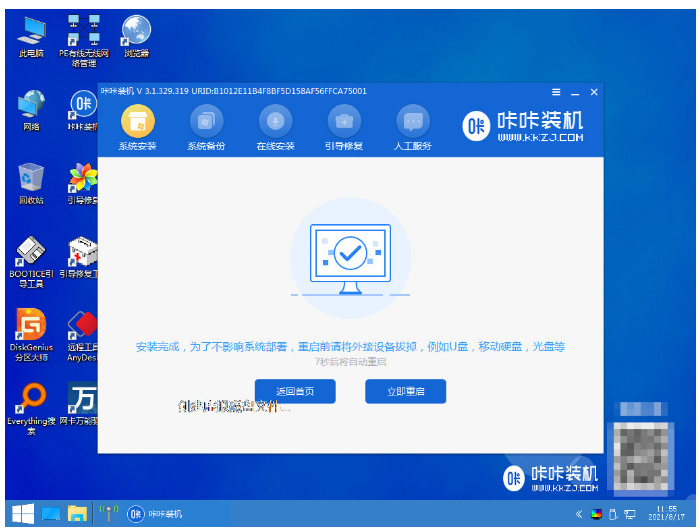 8、提示系統安裝完成之后,點擊立即重啟電腦。