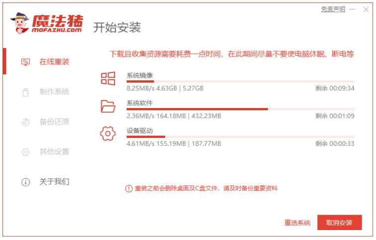 2.然后進入界面之后開始下載系統鏡像文件及驅動設備.