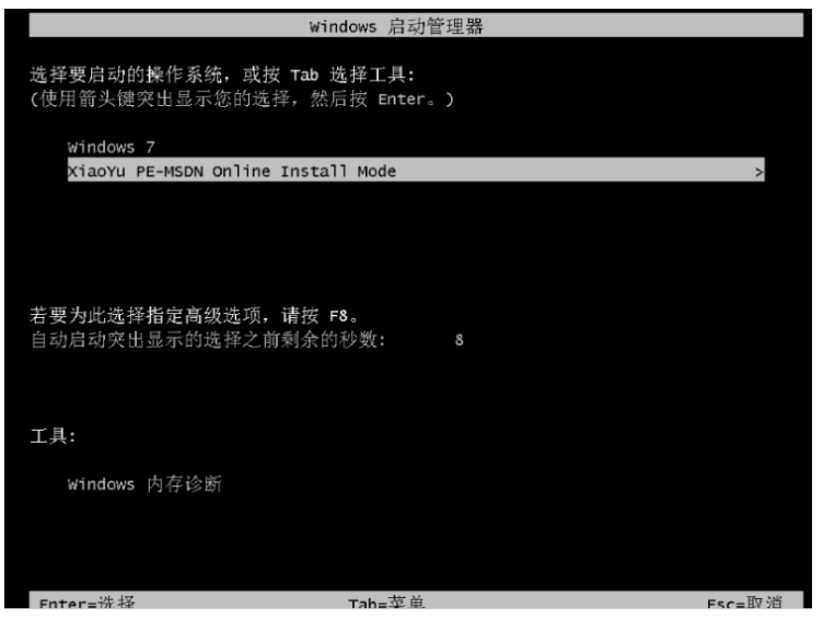 5、當進入到如以下界面,我們選擇第二項按回車鍵進入到xiaoyu-pe系統。