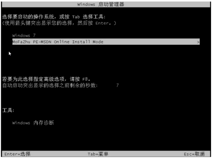 4、選擇mofazhu pe-msdn項,按回車鍵進入pe系統界面內。