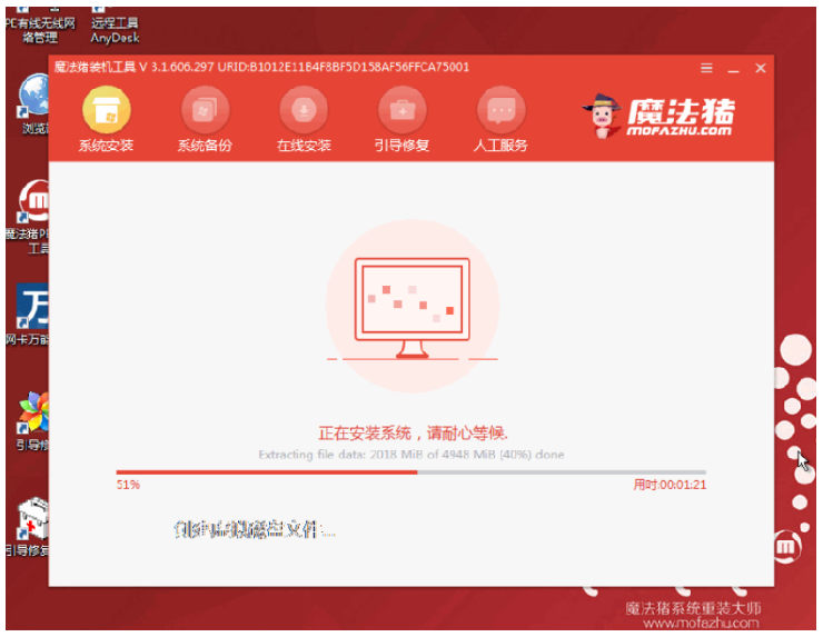 2、部署環境,重啟電腦,進入pe繼續重裝;