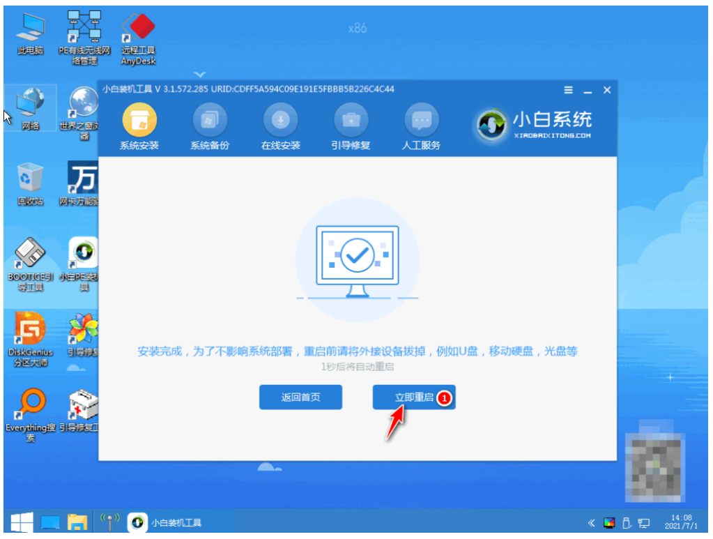 6、在 PE 系統中小白裝機工具就會自動進行安裝系統,只需要根據提示操作即可。