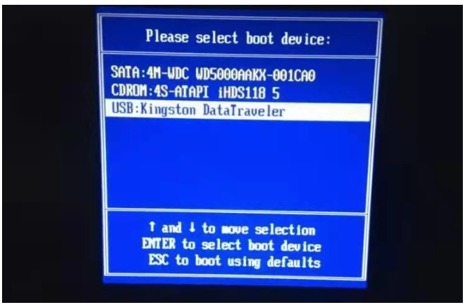 4、將u盤啟動盤插入到需要安裝的電腦種,開機不斷按啟動快捷鍵進啟動界面,可擇u盤啟動項按回車鍵確定進入到pe選擇界面,選擇第一項pe系統按回車鍵。