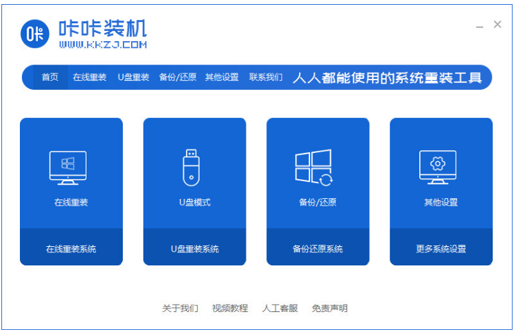 1、首先在電腦下載安裝叫咔咔裝機的軟件,打開之后先進入主頁的界面。