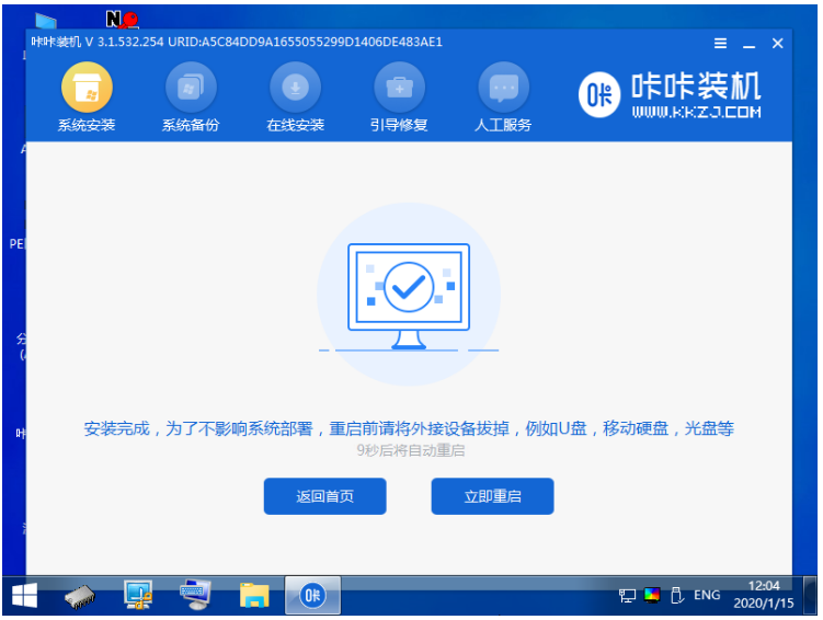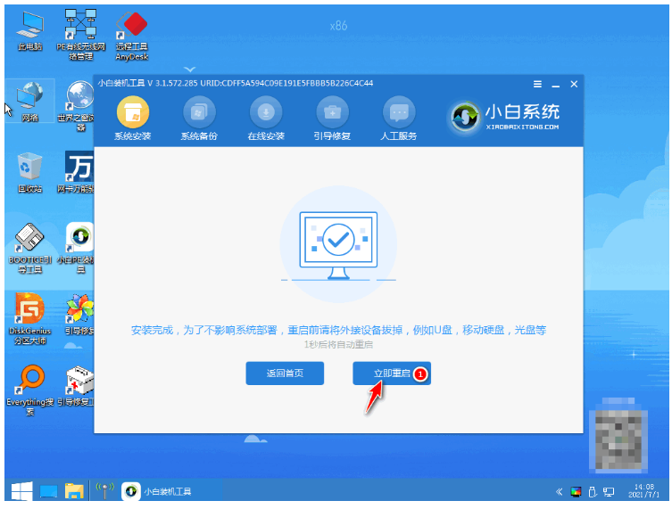 6、系統安裝完成后再次點擊立即重啟按鈕。
